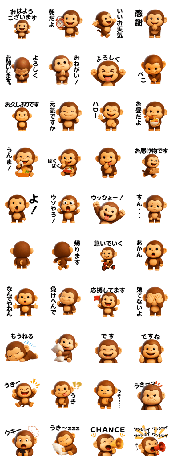 毎日使えるワードがいっぱい!おさるスタンプで楽しい毎日をすごしましょう♪