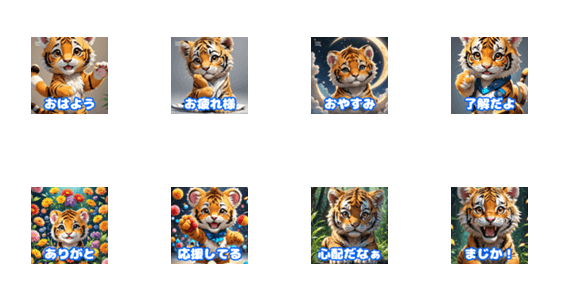 | スタンプ説明 | Adorable baby tiger stickers for everyday use! Express your moods with cuteness overload in every message |