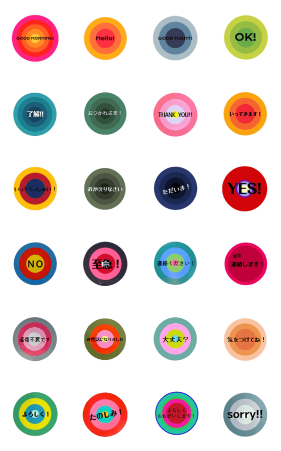 | スタンプ説明 | 日常・ビジネスでも使えるあいさついろいろ。 |