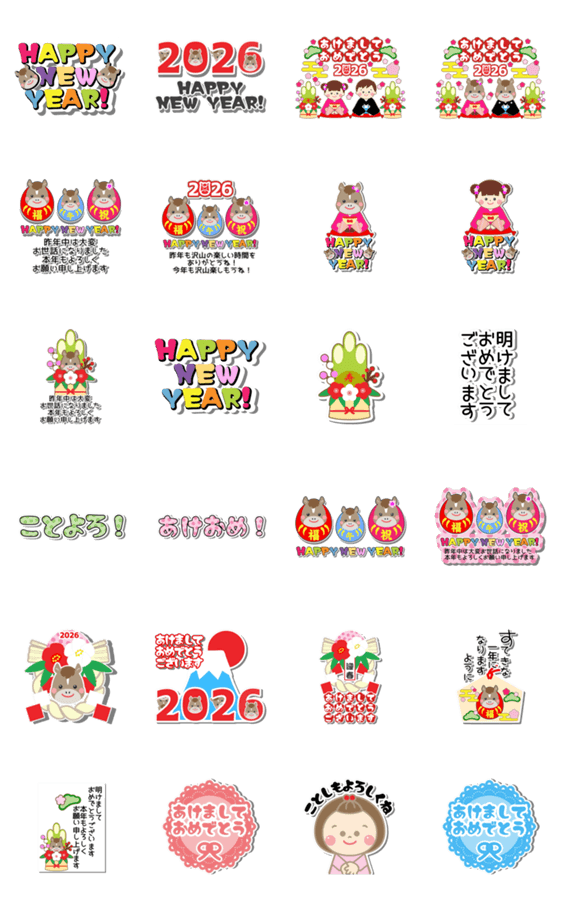 新年に使えるスタンプをご準備しました! あけましておめでとう あけおめ 午年 門松 馬 年賀状