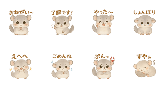 ふわふわの赤ちゃんチンチラ「べびちら」が、毎日の気持ちをやさしく伝えます。癒しと可愛さがぎゅっと詰まったスタンプです。
