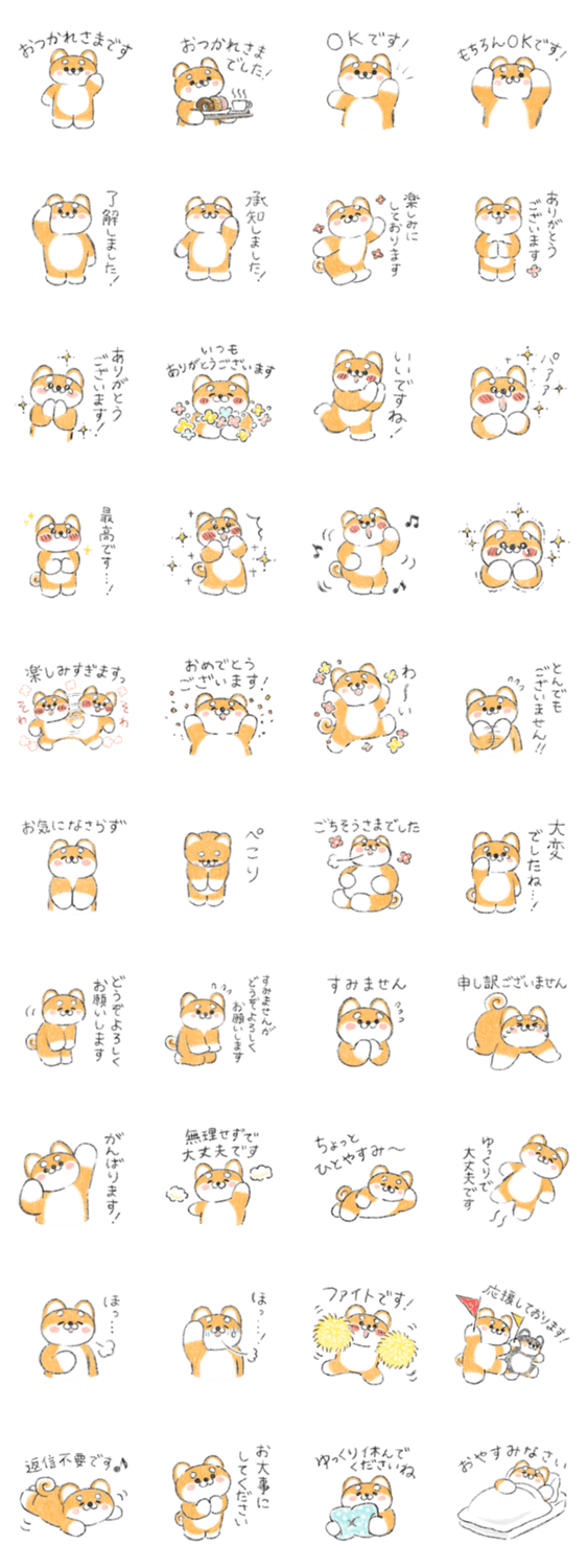 まろ眉とむっちりわがままボディがチャームポイントの柴犬のまろたろう!日常の丁寧なやり取りに使いやすい、やさしい敬語スタンプです♪