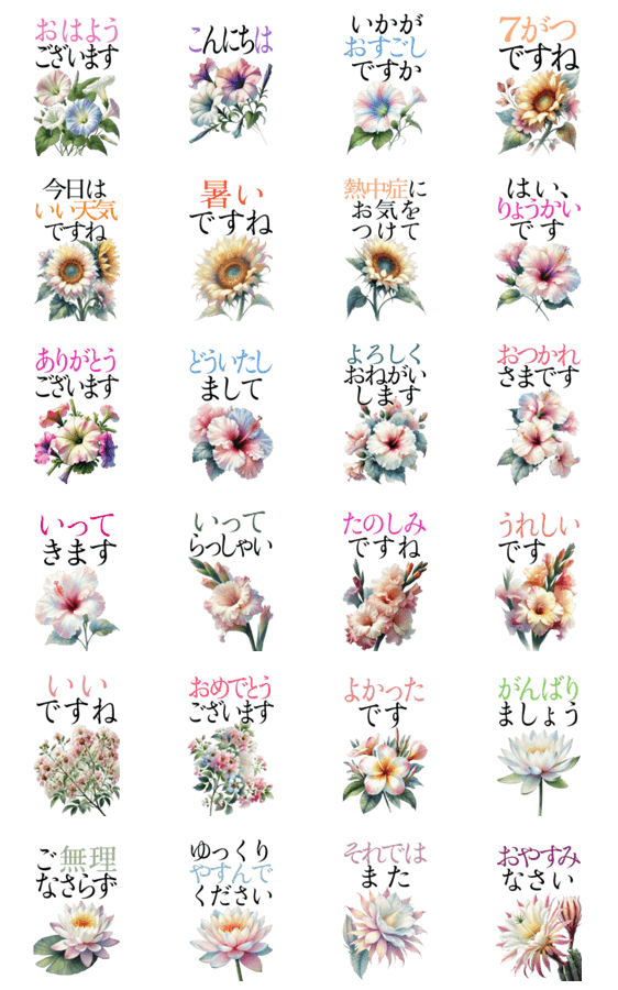 7月 夏の花 大きくて見やすい挨拶スタンプ -LINEスタンプマニア