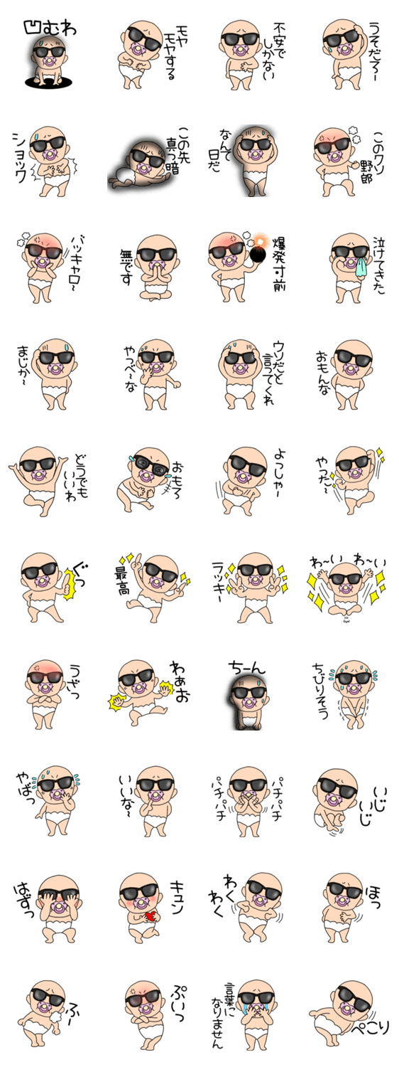 毎日使えるサングラスをかけたベビーの感情を伝えることが出来るあると便利なスタンプです