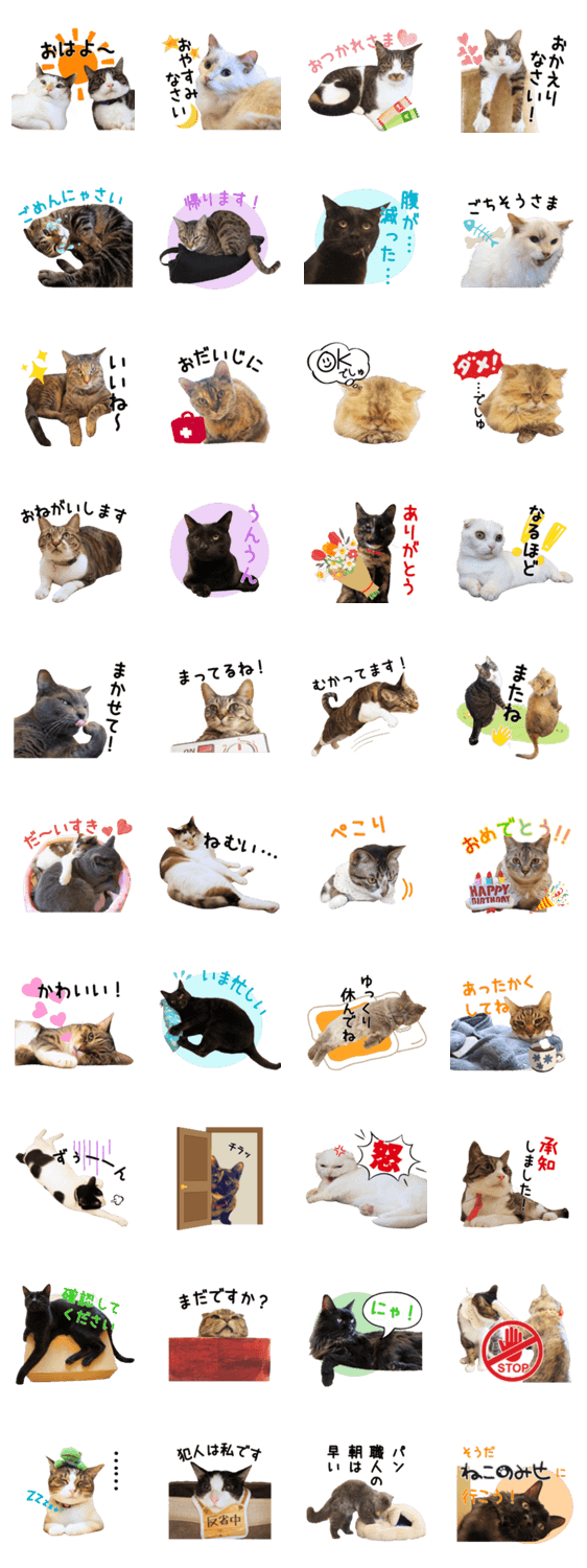 東京都町田市にある猫カフェ「ねこのみせ」は2025年に20周年を迎えました。それを記念して製作した公式スタンプです。歴代にゃんずがあなたのメッセージを伝えます!
