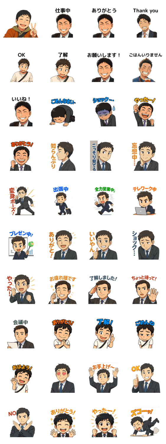 | スタンプ説明 | - apanese businessperson - Japanese office worker - Japanese salaryman - Corporate worker in Japan |