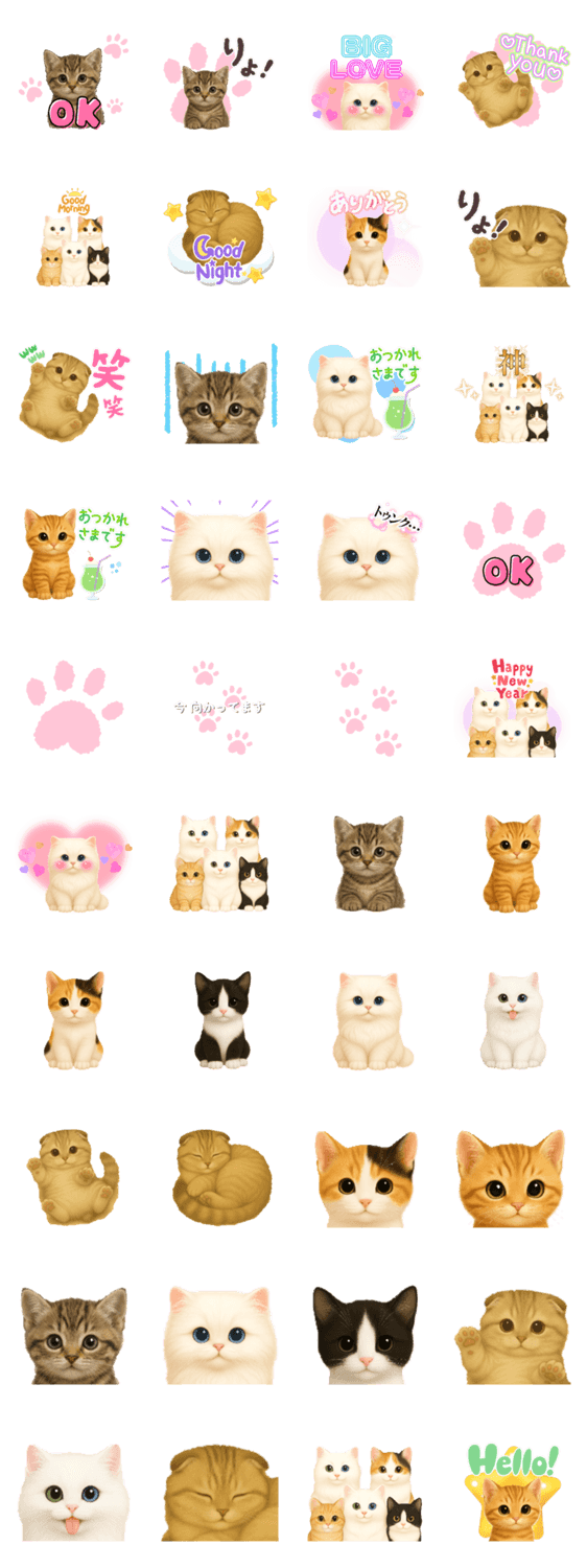 毎日猫ちゃんたちと一緒に過ごせちゃうしあわせスタンプ。可愛くお返事、ご挨拶。足あとをつなげて押してみてね!