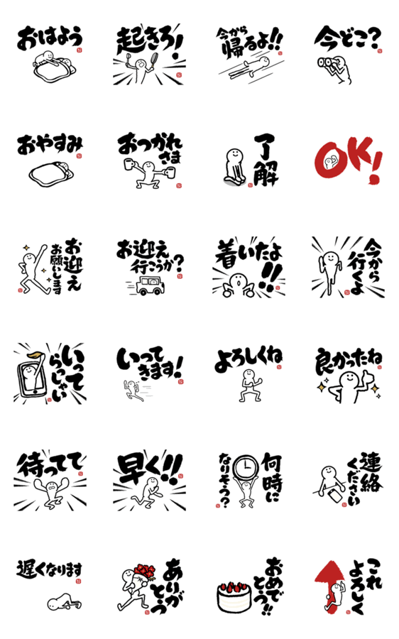 【家族連絡バージョン】めちゃ動く「ふでまる」と大きい文字の「筆文字」が気持ちを伝える!!墨の文字で会話にインパクトを与えてくれるかも!!