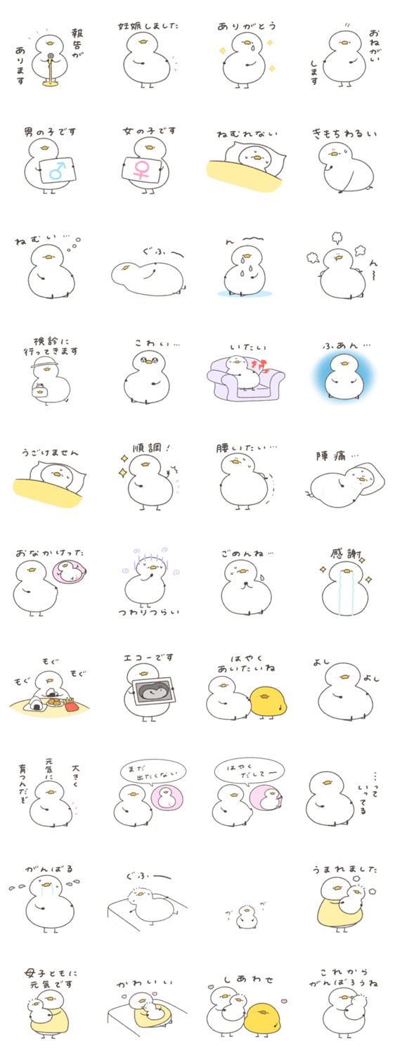 妊娠、出産期間中に使えるあひるのスタンプです!