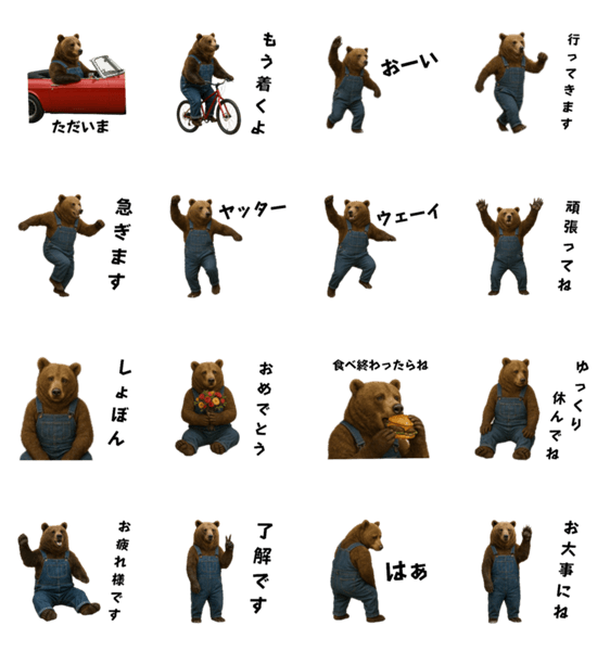 | スタンプ説明 | アメリカン グリズリーベア 熊 クマ くま サロペット 擬人化 ほっこり シンプル カッコいい おしゃれ かわいい 使いやすい 日常 個性的 面白い 使える |