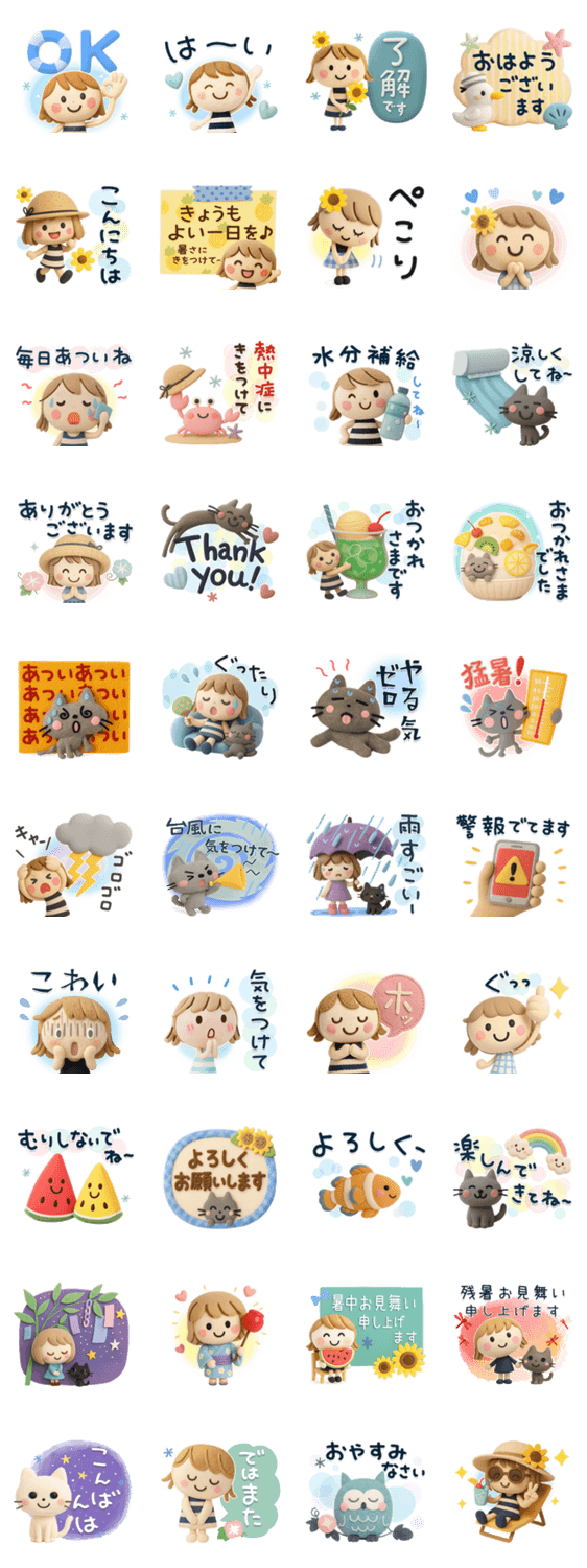 毎年使える夏スタンプです♪ひらりーーのミルクティーシリーズ14 黒猫/猫/敬語/挨拶/大人/大人女子
