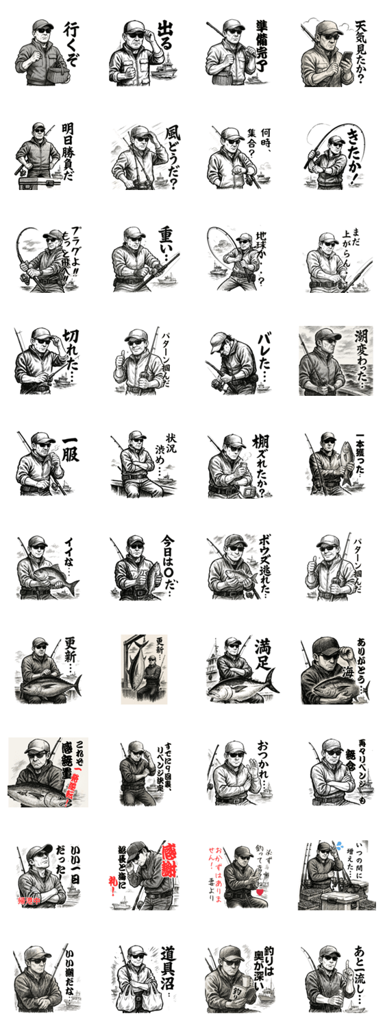 渋オジ「ケンさんの釣り日誌」 -LINEスタンプマニア