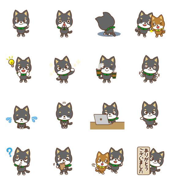 | スタンプ説明 | ほこれ(黒柴): しっかり者で、ほめ上手。仕事に誇りをもちすぎて暑苦しいときも… あらら(茶柴): いつも前向き、すぐ行動。おっちょこちょいで失敗することも… |