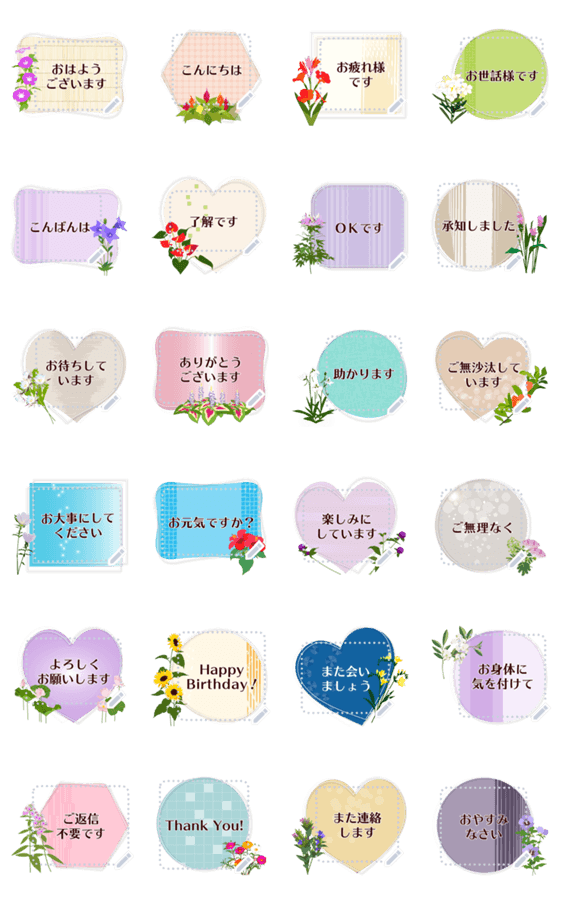 8月の誕生花、フレームいろいろ。好きなテキストを自由に入力して、毎日の挨拶やおしゃべりにご利用ください。#花 #フレーム #挨拶 #8月 現在この商品は一部のスマートフォン版LINE 10.3.0以上のトークルームでのみ使用できます。動作環境の最新情報はヘルプをご確認ください。