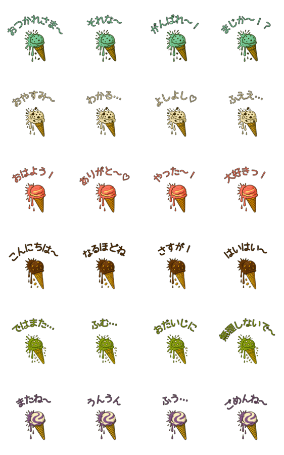 | スタンプ説明 | 毎日つかえる!かわいくてゆる〜いアイスたちのスタンプ お気に入りのフレーバーで気持ちを届けよう♪ 推しアイスと一緒に、ゆるっと気持ちを伝えてね。 |