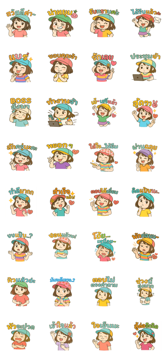 | スタンプ説明 | Express your everyday feelings with this adorable girl! This cute and colorful sticker set is perfect for every moment from work to play, love to fun! |