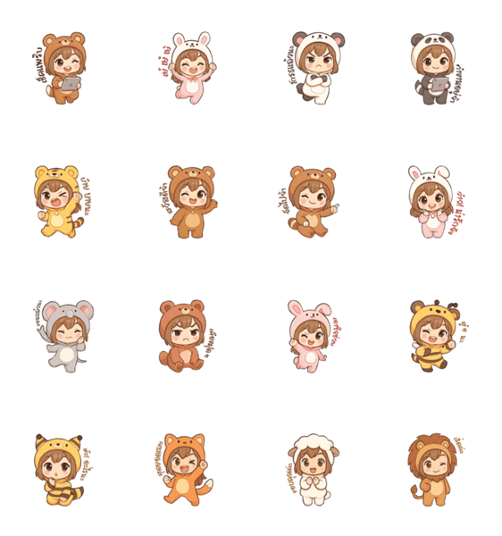 | スタンプ説明 | Stickers of a little girl wearing various cute animal costumes |