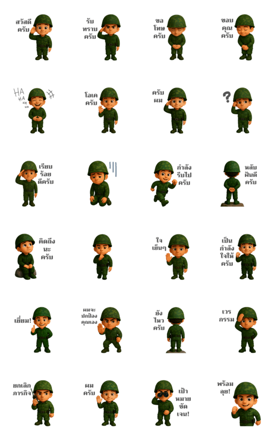 | スタンプ説明 | Brave, loyal and always ready Thai soldiers! Showing bravery and military charm. |