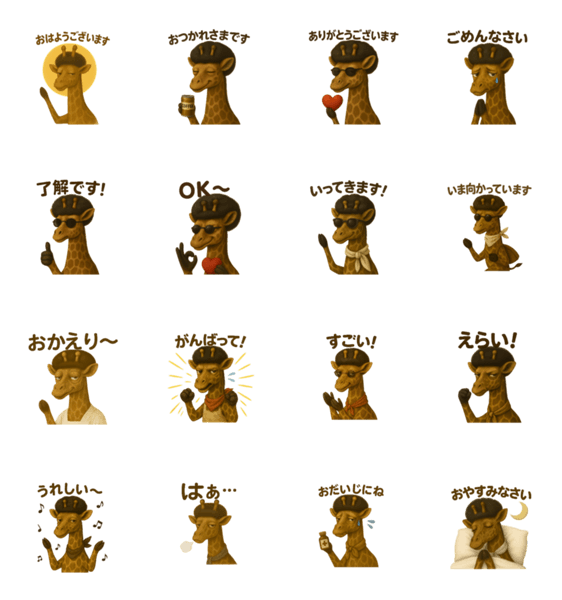 | スタンプ説明 | アフロきりんさんに、あなたの気持ちを託してください。ちょっとニヒルだけど優しいアフロきりんさんを通して、きっと想いが伝わります。(彼は朝が苦手です) |