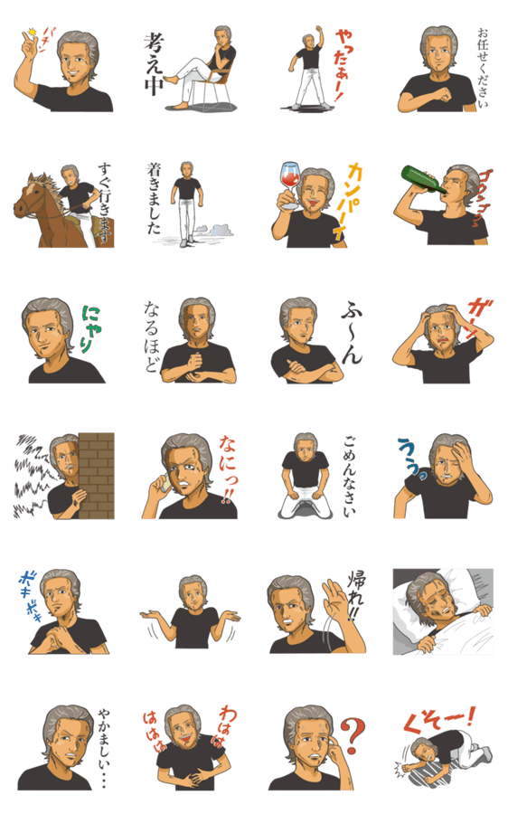 ミスターFが、ついにシリアス劇画調に大変身!人気シリーズ第14弾の面白スタンプだよ。