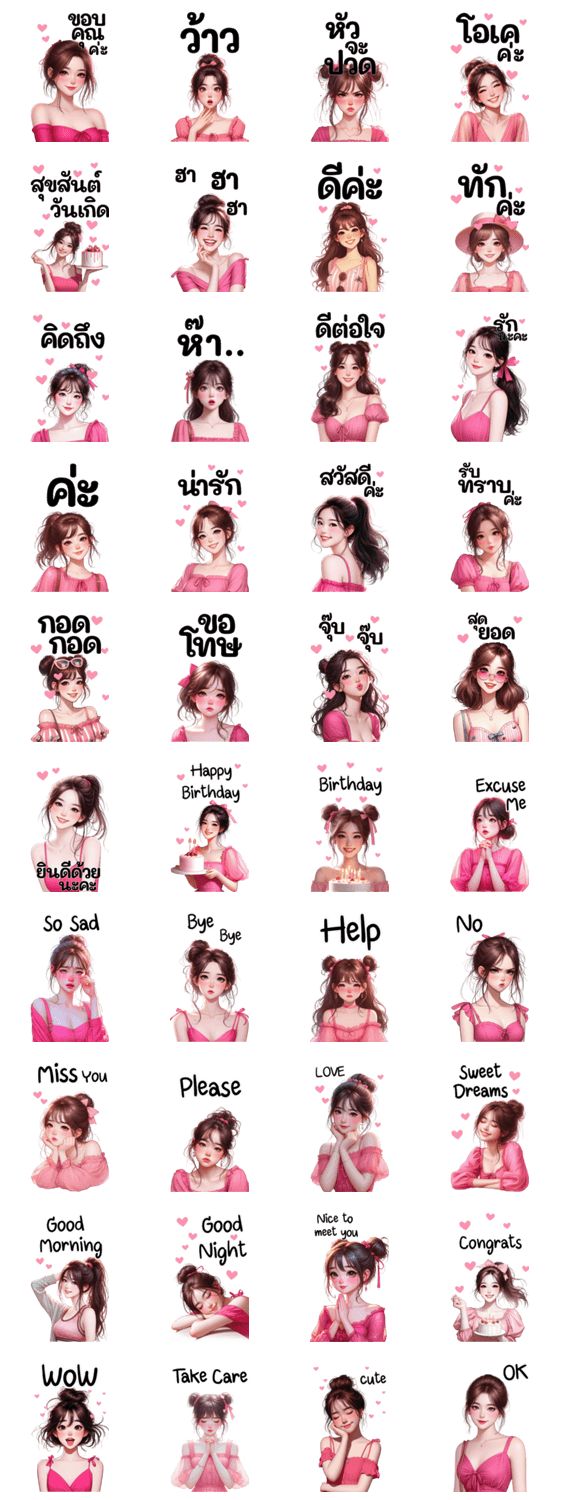 Beautiful girl in pink no.2 These stickers will show up extra large in chats.