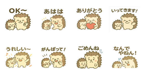 ゆるくてかわいい親子ハリネズミが、毎日の気持ちをふんわり届けるスタンプ。挨拶、励まし、ツッコミもバッチリ!家族や友だちとのやりとりにぴったり♪