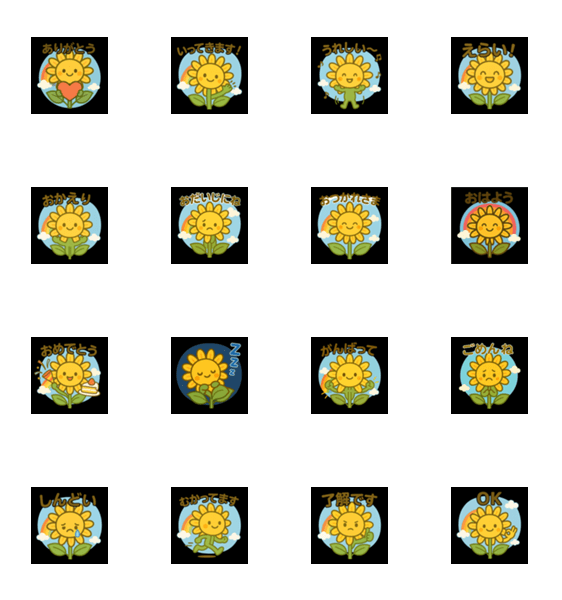 ほっこりとしたひまわりと背景の虹がかわいいスタンプです