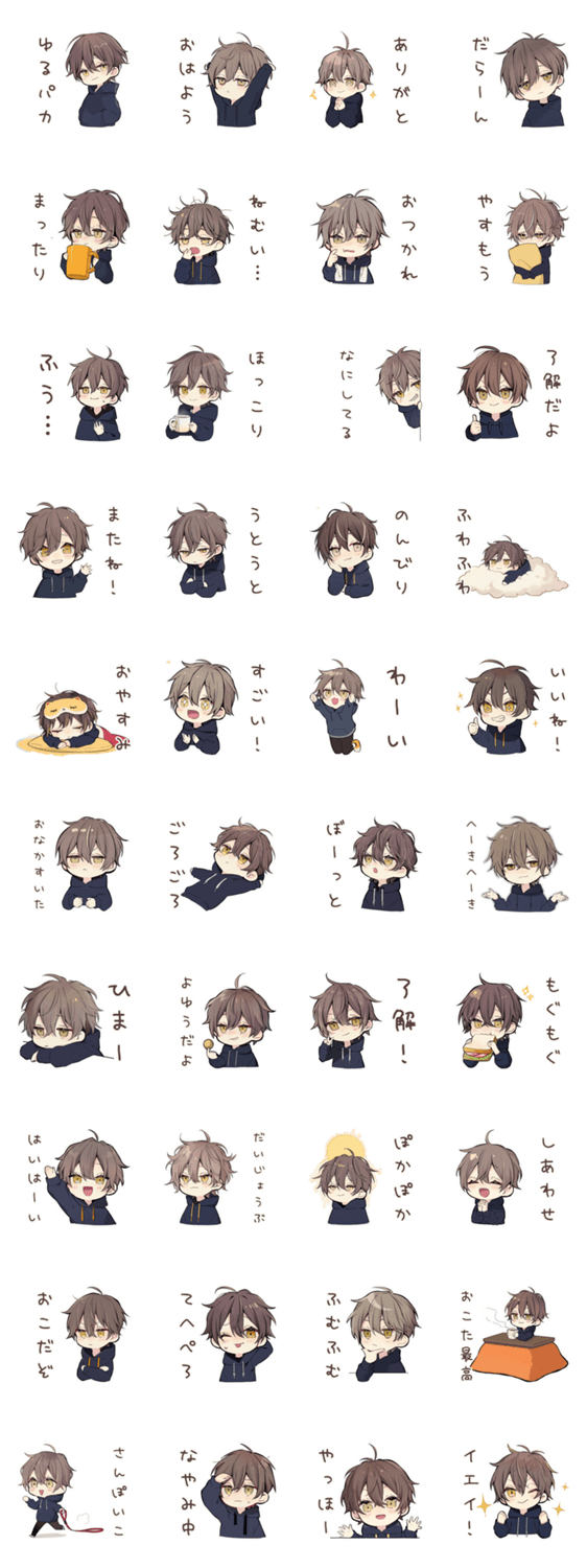 毎日使える、かわいい、ゆるい、パーカー男子の日常。普段使いにぴったりなスタンプです。