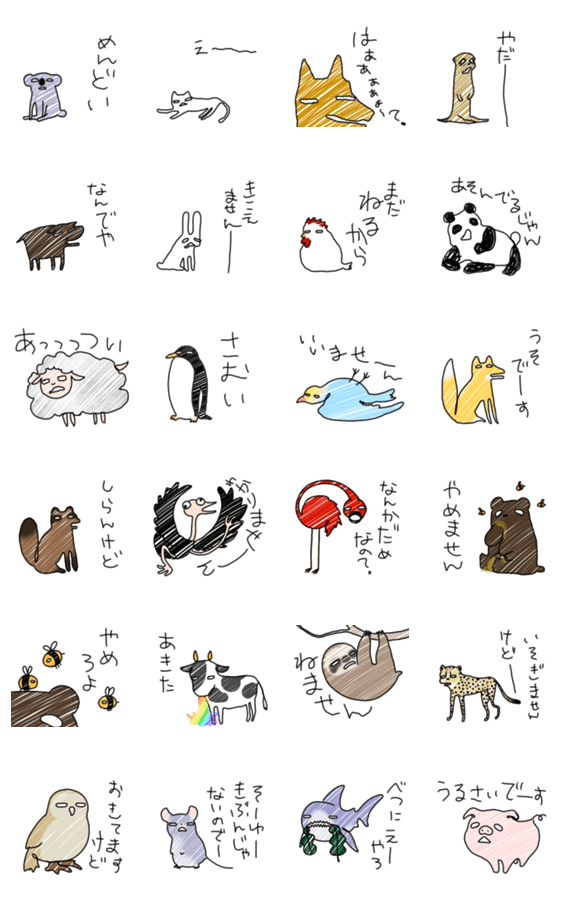 ゆるい動物たちのゆるーいスタンプ!ふわっと登場!日常のお供にどうぞ!