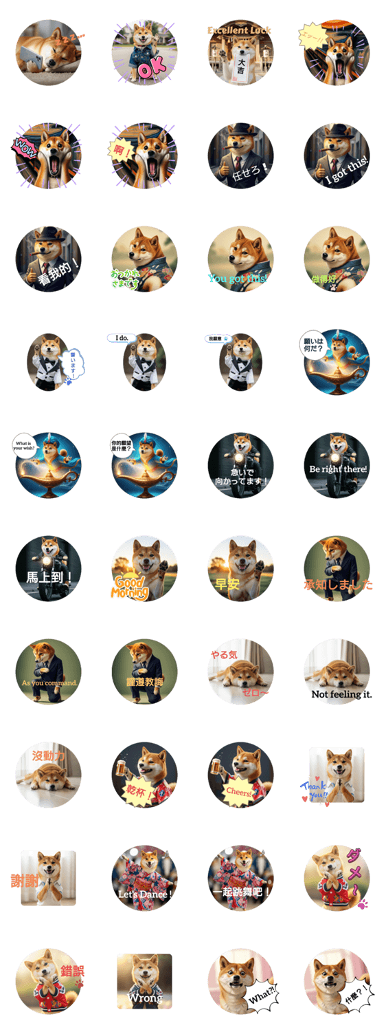 | スタンプ説明 | I'm using AI for Shiba Inu stickers. 柴犬スタンプ色々でAIの協力してもらってます。我用AI製作柴犬貼圖 |