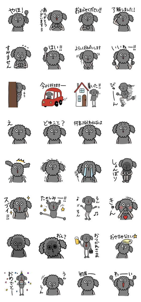グレープードルの「もふお」が、ぽけ〜っと日常を彩ります。 あいさつも、リアクションも、ちょっとした気持ちも、もふおにおまかせ♪
