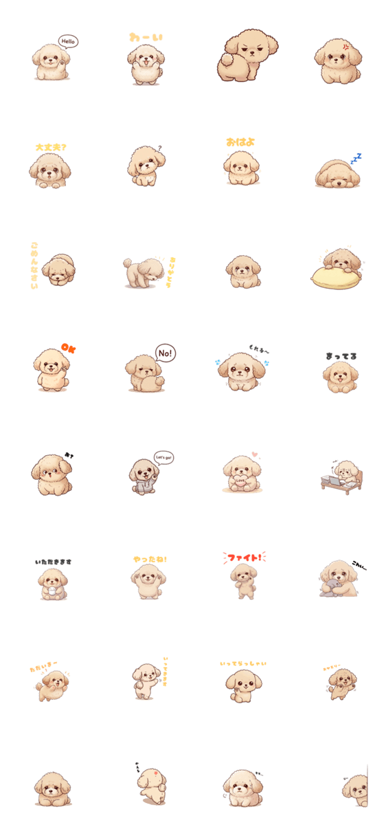| スタンプ説明 | ゆるふわで癒される、ティーカッププードルのLINEスタンプが登場!日常のあいさつやちょっとした気持ちをふんわり伝えます。 毎日の会話にぴったりのセットです |