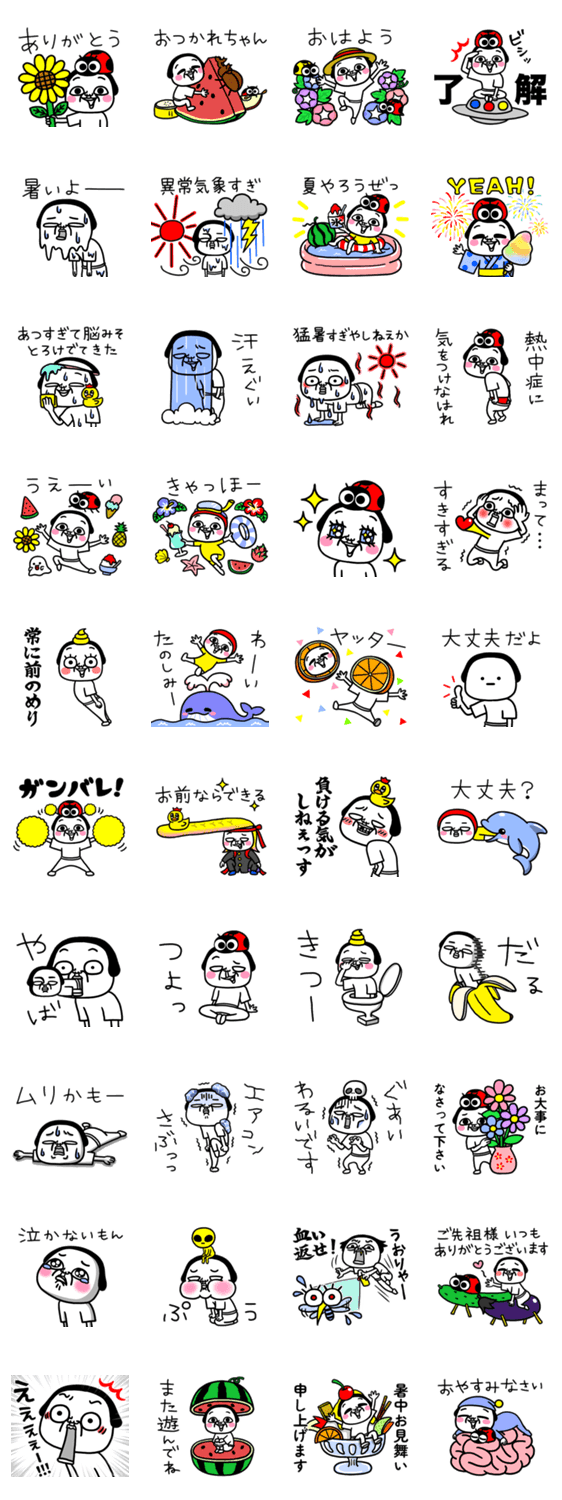 マイペースに生きる人々のためのシュールで自由なナンセンスなスタンプ。夏に使いやすい元気でシュールなスタンプです!