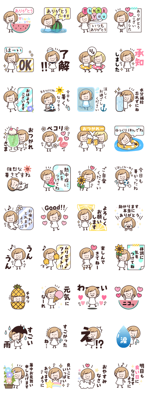 ゆるくてかわいい女の子♡可愛すぎずシンプルなので大人女子も使いやすい♪夏スタンプ