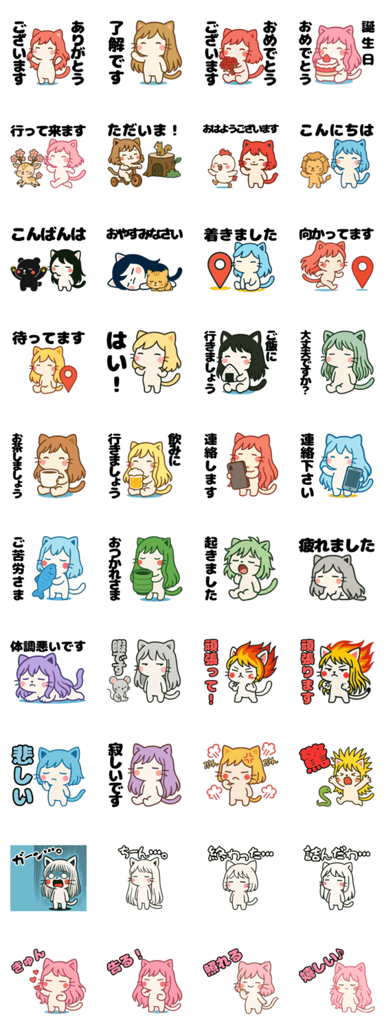 | スタンプ説明 | 【敬語】カラフルな髪の毛を生やした「ねっ娘」達と楽しくコミュニケーションを取りましょう! |