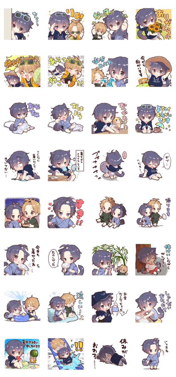 今年も夏のあおいくんスタンプが出来ました! モブ兄さんも多めで楽しいです! たくさん使ってください(*´ω`*)