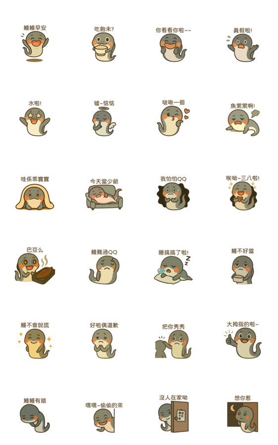 | スタンプ説明 | Manny the adorable eel brings cozy greetings and warm vibes to your chats. Say hi, cheer up friends, or send cute apologies with just a sticker. |
