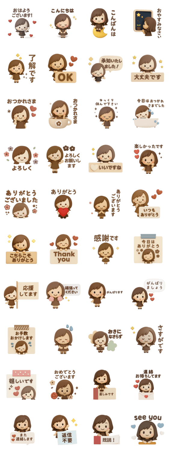 一つあると便利な女の子のスタンプです。 女の子/ボブ/大人可愛い/シンプル/あいさつ/吹き出し/くすみカラー/3D