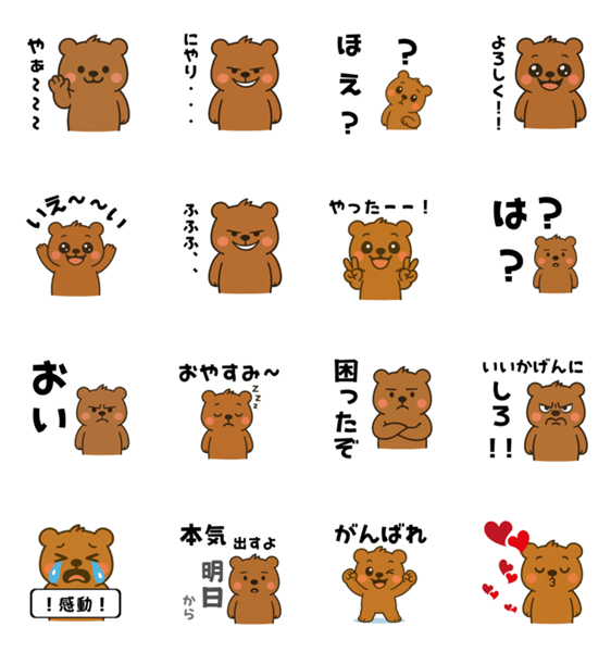 毎日使える、ゆるっとかわいいクマのスタンプが登場!挨拶から感情表現まで、使いやすさバツグン。癒し系・シンプル・日常会話・かわいい・くま・シュール・など楽しんで!
