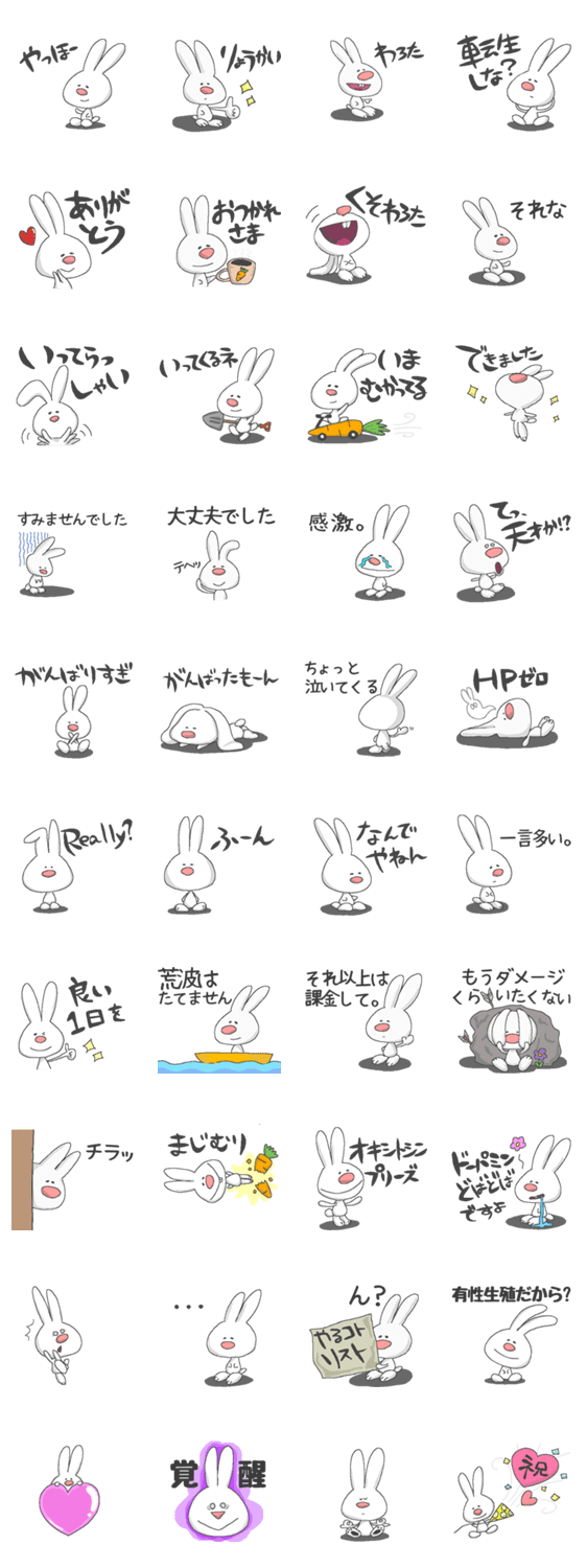 | スタンプ説明 | 情緒はやや不安定。たまにボソッと毒をはくけど、根は優しいうさぎです。そんな「もやぴょん」があなたの心の奥のつぶやきを可愛く代弁してみせます。 |