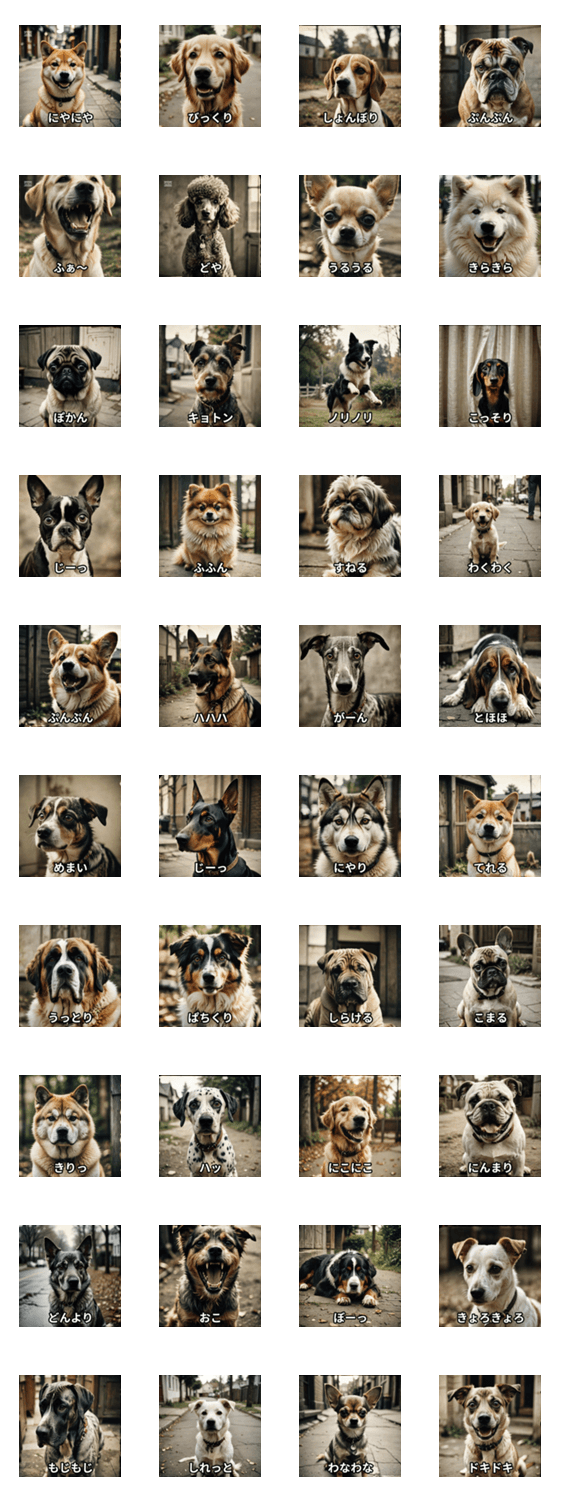 | スタンプ説明 | 気分屋ワンコが、笑ったり怒ったりすねたり大忙し!トークを盛り上げる40種類のリアクションスタンプです。 |
