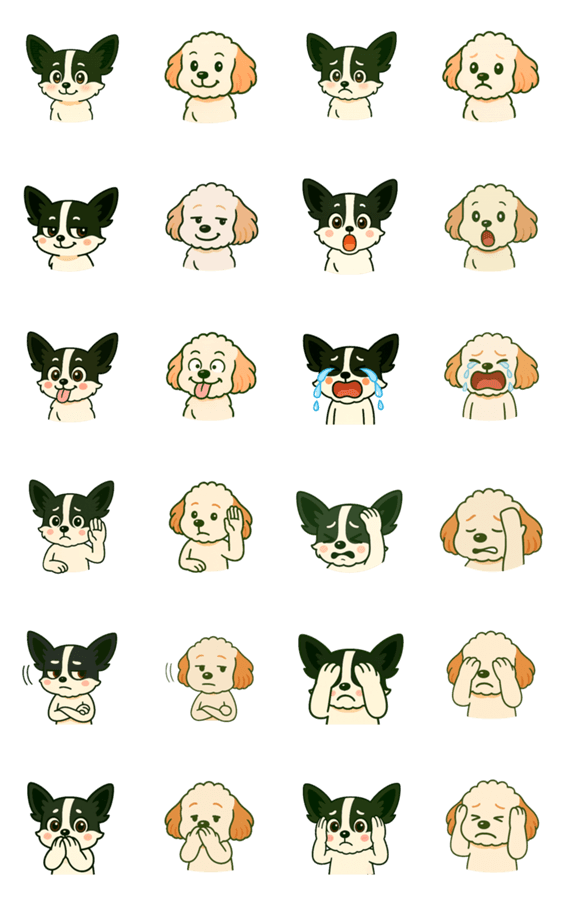 チワワのコロン、マルプーのマロンのワンちゃん姉妹のスタンプパート5です。