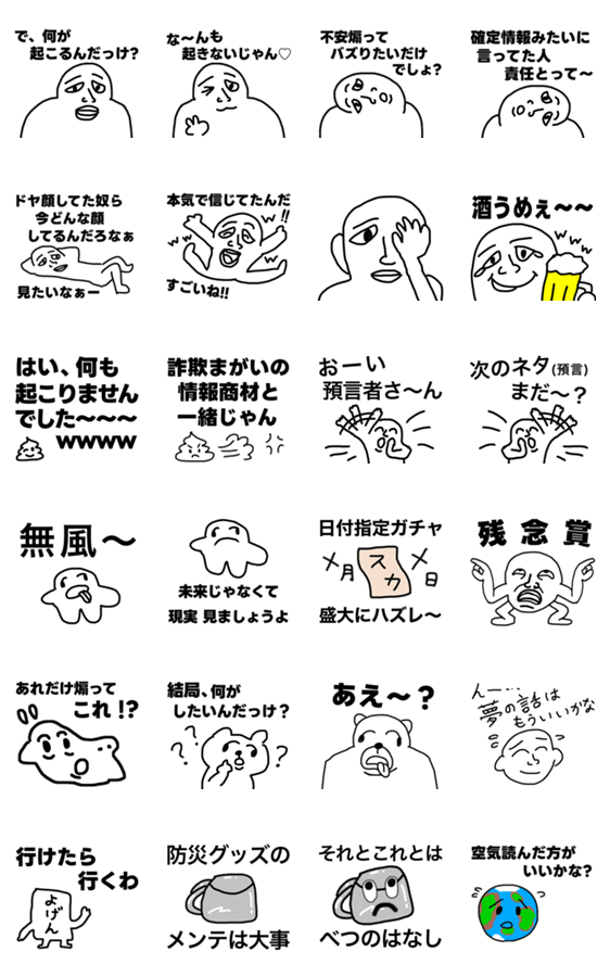 予言が外れた時に使える便利なスタンプです。信じて煽ってドヤ顔して、大騒ぎした日々、お疲れ様でした。