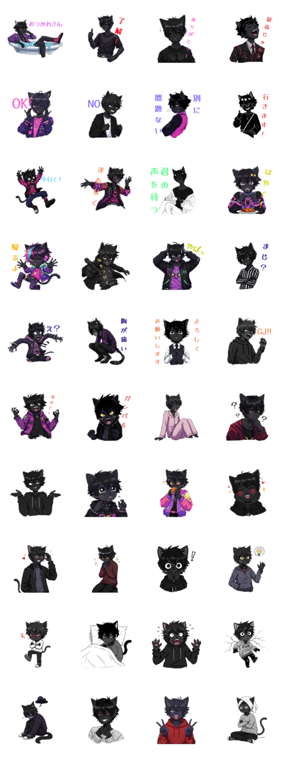 | スタンプ説明 | ギャル男になりたい黒猫クロヲの日常会話とリアクションスタンプです。 |