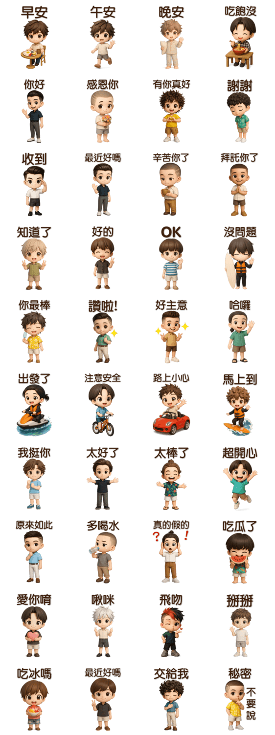 | スタンプ説明 | Cute boy-Practical big stickers- These stickers will show up extra large in chats. |