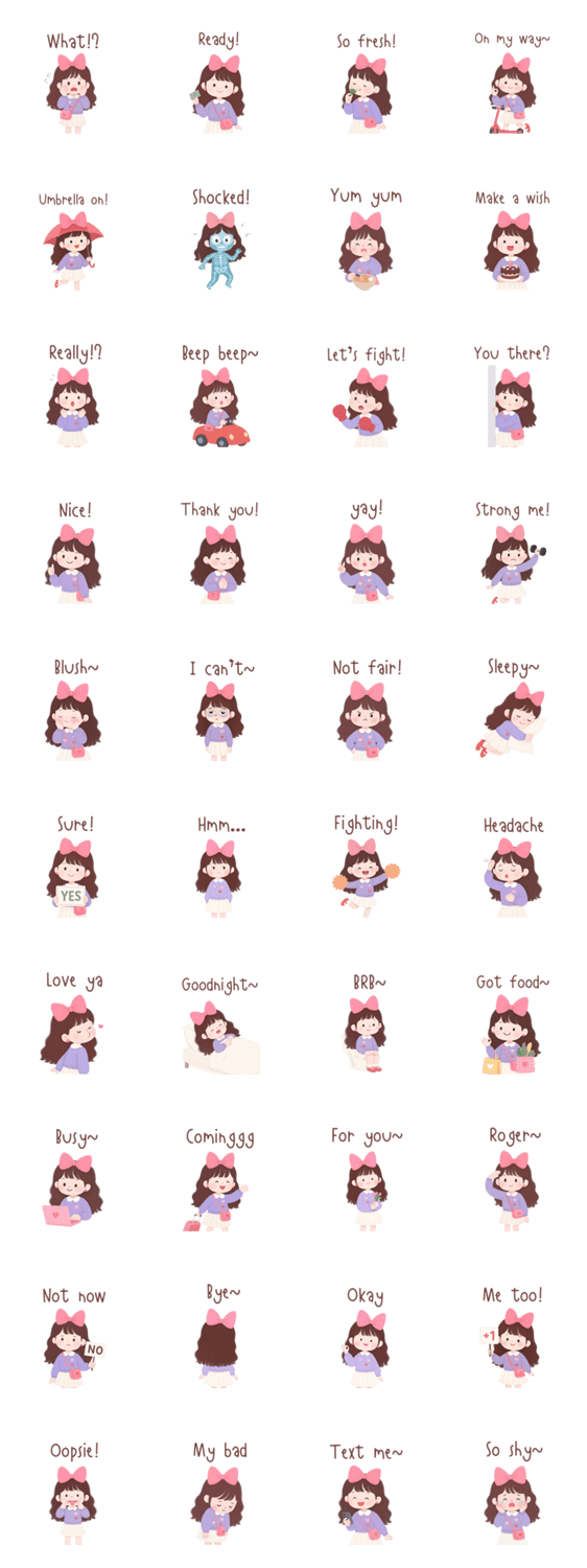 | スタンプ説明 | Cute Girls Stickers, Cute Cartoon Stickers, Pastel Cartoon Stickers These stickers will show up extra large in chats. |