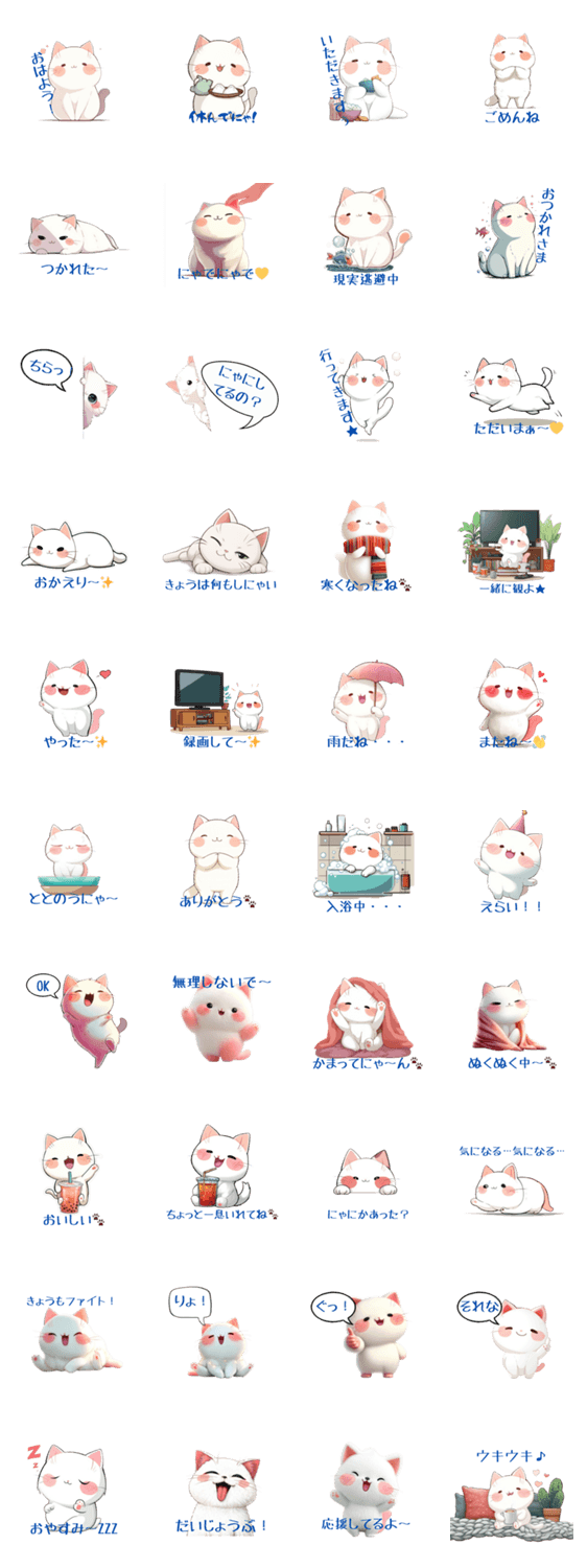 | スタンプ説明 | These laid-back cats bring you a dose of daily chill. Perfect for greetings and little messages. Let these mellow kitties add a touch of calm to your chats. |