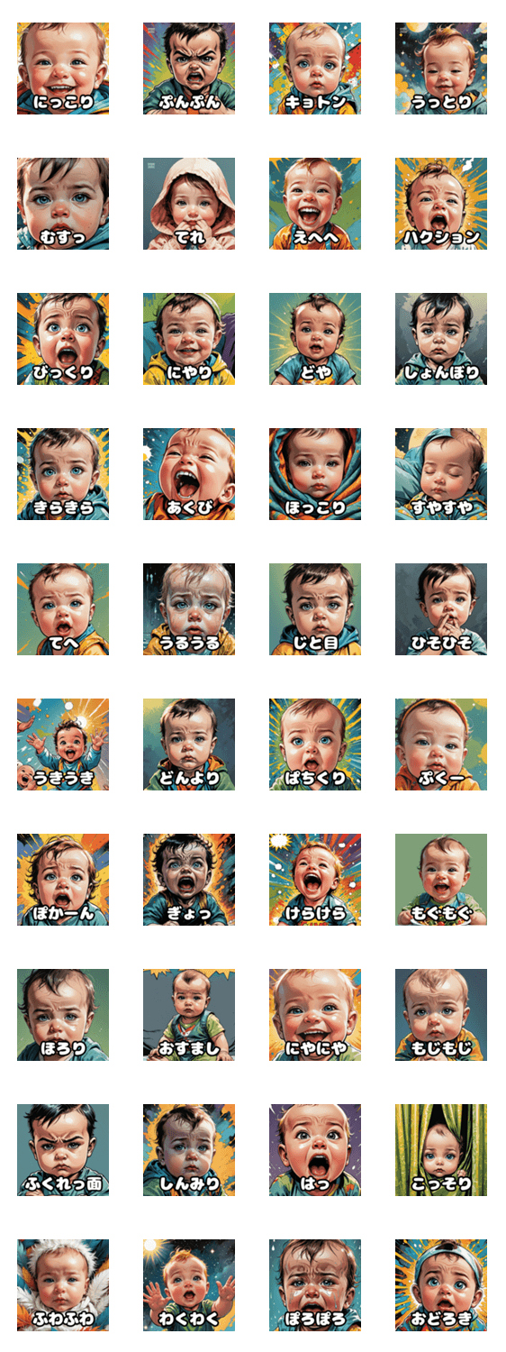 表情豊かな赤ちゃんが、毎日の気持ちをかわいく伝えてくれるスタンプです。ニコニコ、ぷんすか、しょんぼり…あなたの感情ぜんぶおまかせ!
