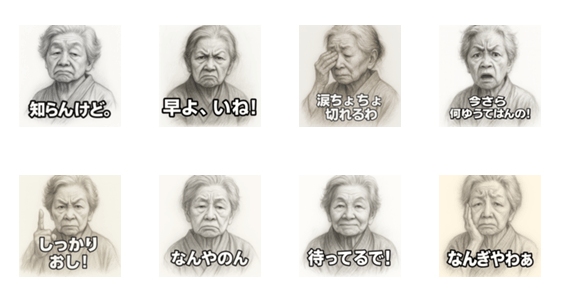 | スタンプ説明 | 渋くて毒舌!でもどこか愛おしい…そんなおばあちゃんの一撃スタンプ! |