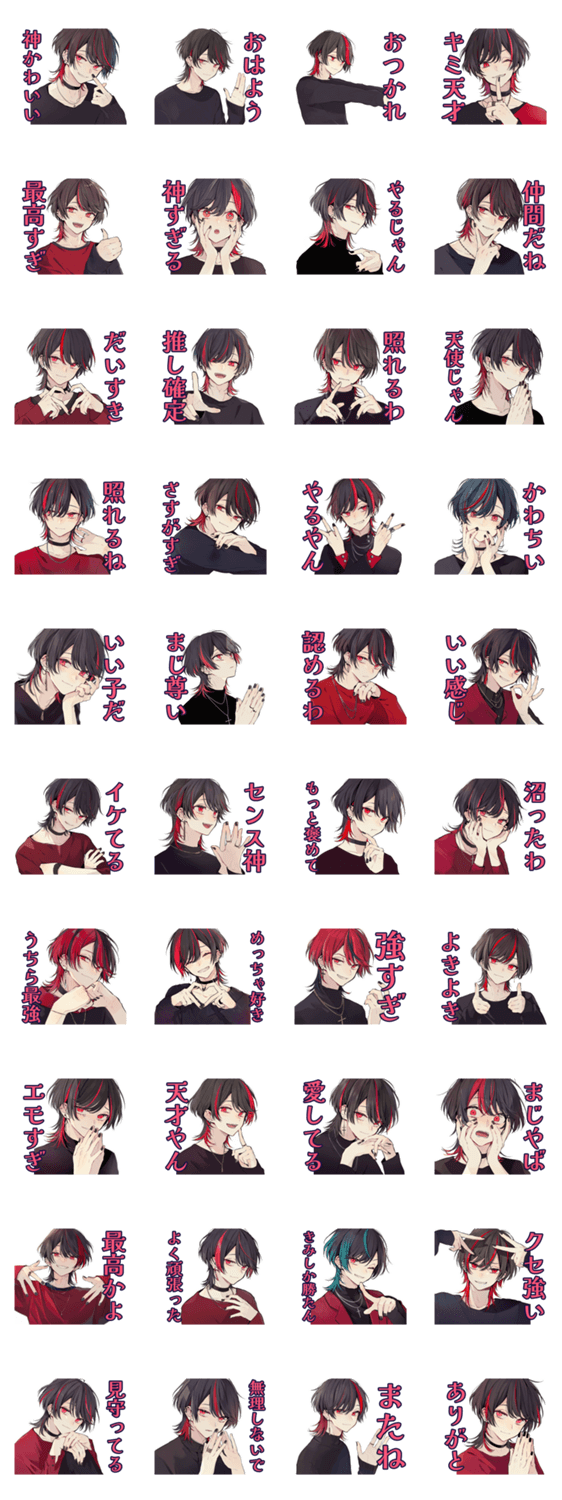 地雷系、ホスト、メンヘラ男子、サブカル好き必見!毎日使えるほめスタンプです。